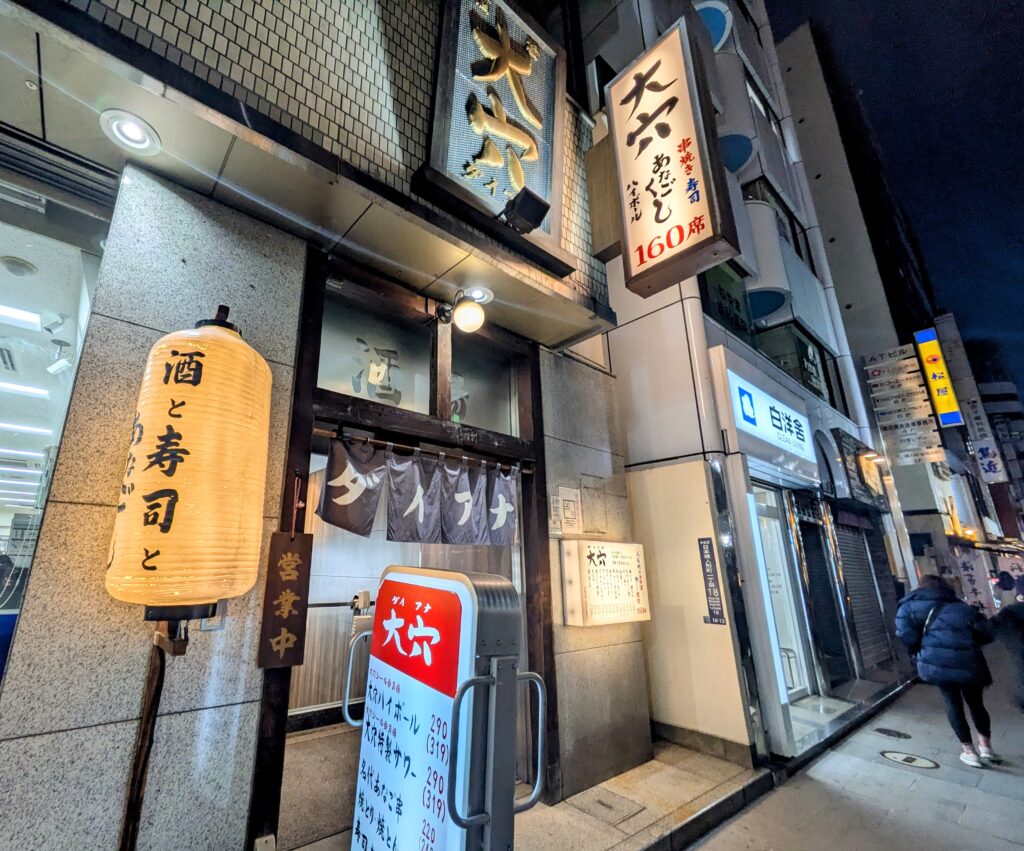 人形町の夜に輝く看板は【大穴】