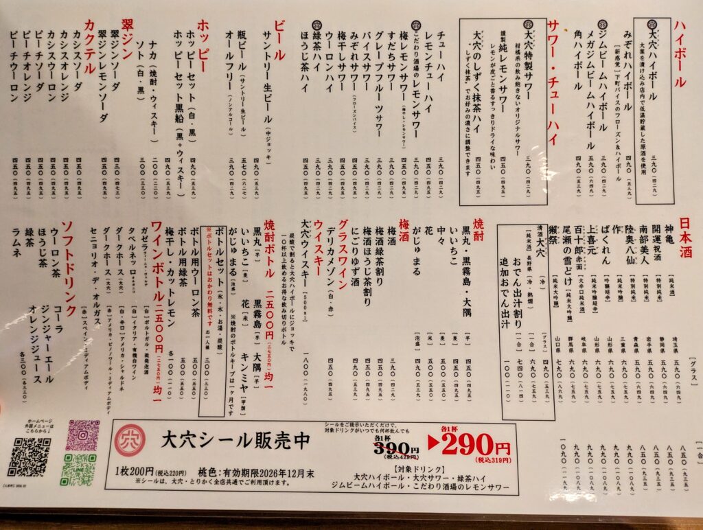 また大穴は今回ご紹介した人形町店以外にも、八重洲店、五反田店、千葉店、川崎駅前店など全8店舗あり、どこも駅チカなのでお店選びに困ったときにもいいお店です