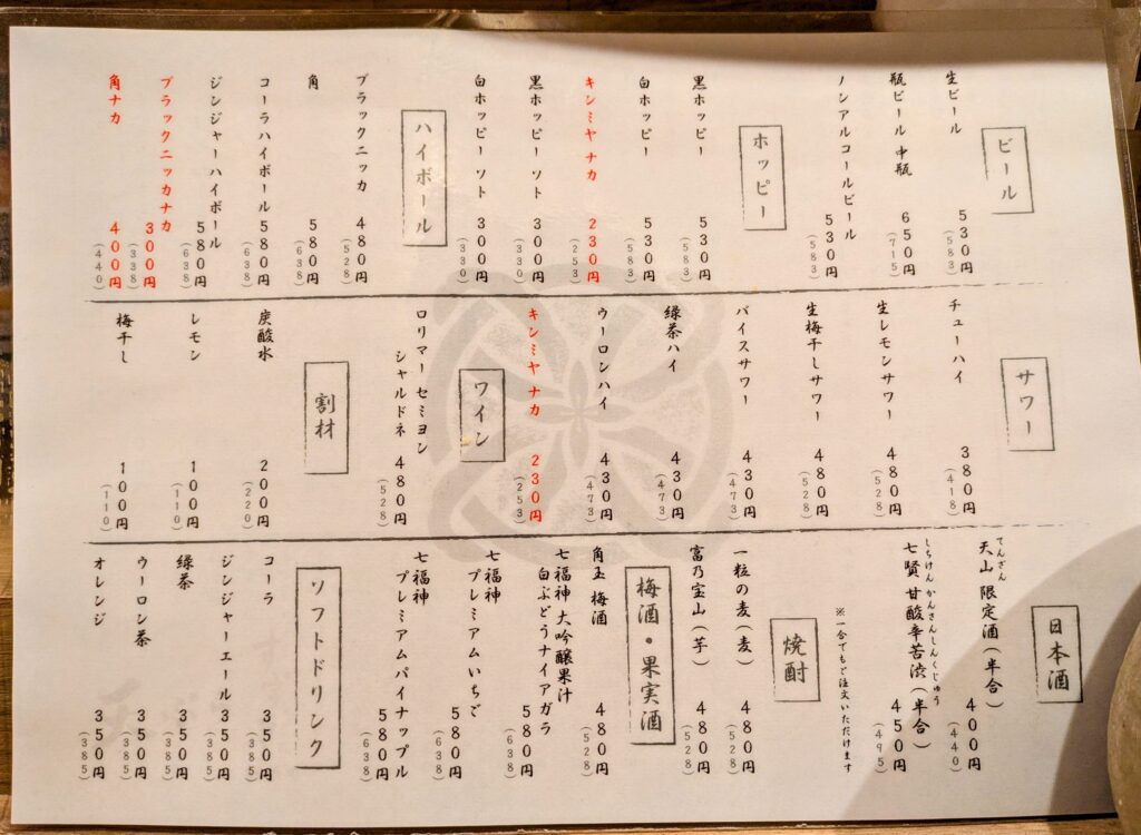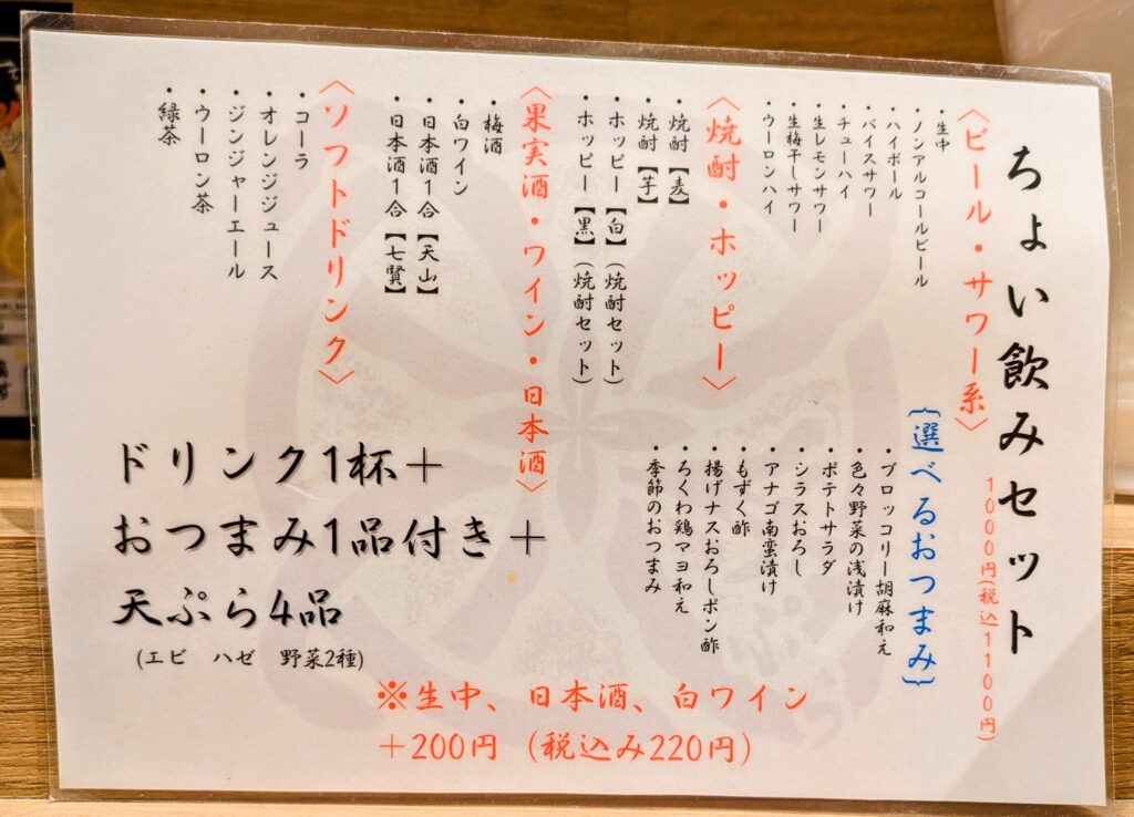 まずご紹介するのがメニュー表に記載のちょい飲みセット