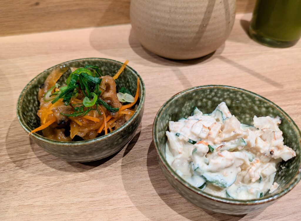 小鉢はすぐに出てくるので、まずはこちらをアテにお酒を飲みながら天ぷらを楽しむのがおすすめです!